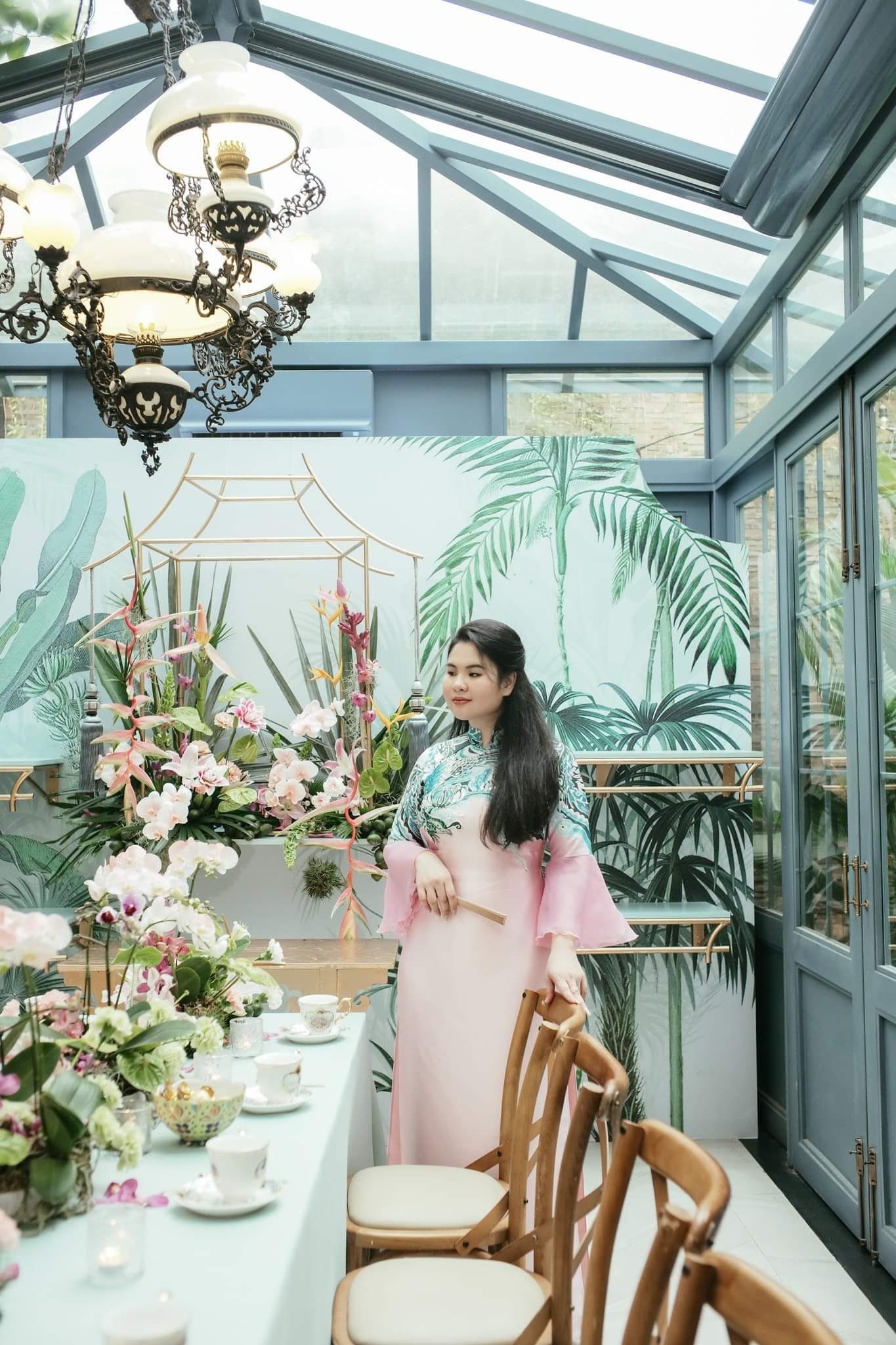 Thiết kế tinh tế với những đường nét may thủ công tỉ mỉ trên tà áo dài đã góp phần tôn lên vóc dáng mảnh mai, thanh tao của Quế Khanh. Chất liệu cao cấp, mềm mại, ôm sát cơ thể giúp cô dâu tự tin khoe trọn đường cong quyến rũ. Từng chi tiết nhỏ trên áo dài đều được chăm chút kỹ lưỡng, tạo nên tổng thể hài hòa và hoàn hảo với concept của đám cưới.